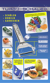 Turboschäler und Hobel in Blisterpackung,unser bester Artikel..Schälen - Hobeln - Garnieren mit Anleitung
