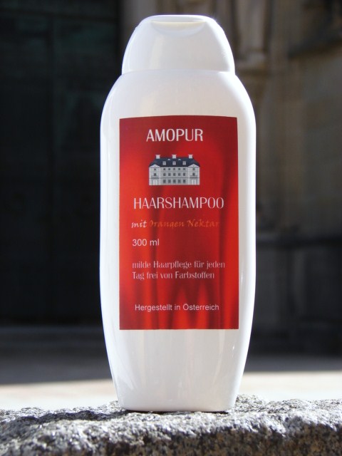 Amopur Shampoo mit Orangen Nektar ist PH-neutral und mild und ohne Farbstoffe.