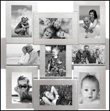 ein Bilderrahmen mit Platz für 9 Bilder, 5 Bilder hochkant oder 4 Bilder waagerrecht, |